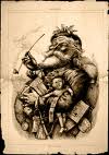 Santa Claus was next seen by Thomas Nast, sometime in the 1860s. Nast was a cartoonist and social commentator who gave us, among other things, Uncle Sam, the symbols of both the Republican and Democratic political parties and the term “nasty.” Obviously, a witness to history like Nast would not let his encounter with Santa Claus go unrecorded. In the January 3rd, 1863 issue of Harper’s Weekly, Nast drew an illustration of Santa Claus meeting Union troops and passing out gifts during the Civil War. We know this portrayal to be accurate because Santa Claus appears exactly as Clement Moore described him! Clearly, these two depictions are of the same person. Nast seems to have developed a long-term relationship with Santa Claus, because, twenty years later, he drew him again in what looks like a seated portrait.